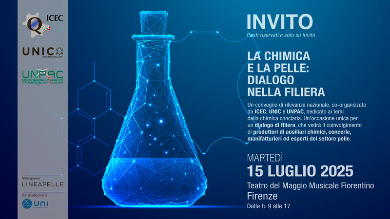 ICEC, UNIC e UNPAC organizzano l’evento “LA CHIMICA E LA PELLE: DIALOGO NELLA FILIERA”, che riunirà imprese, enti, brand e professionisti del settore pelle per una giornata di confronto su temi strategici: