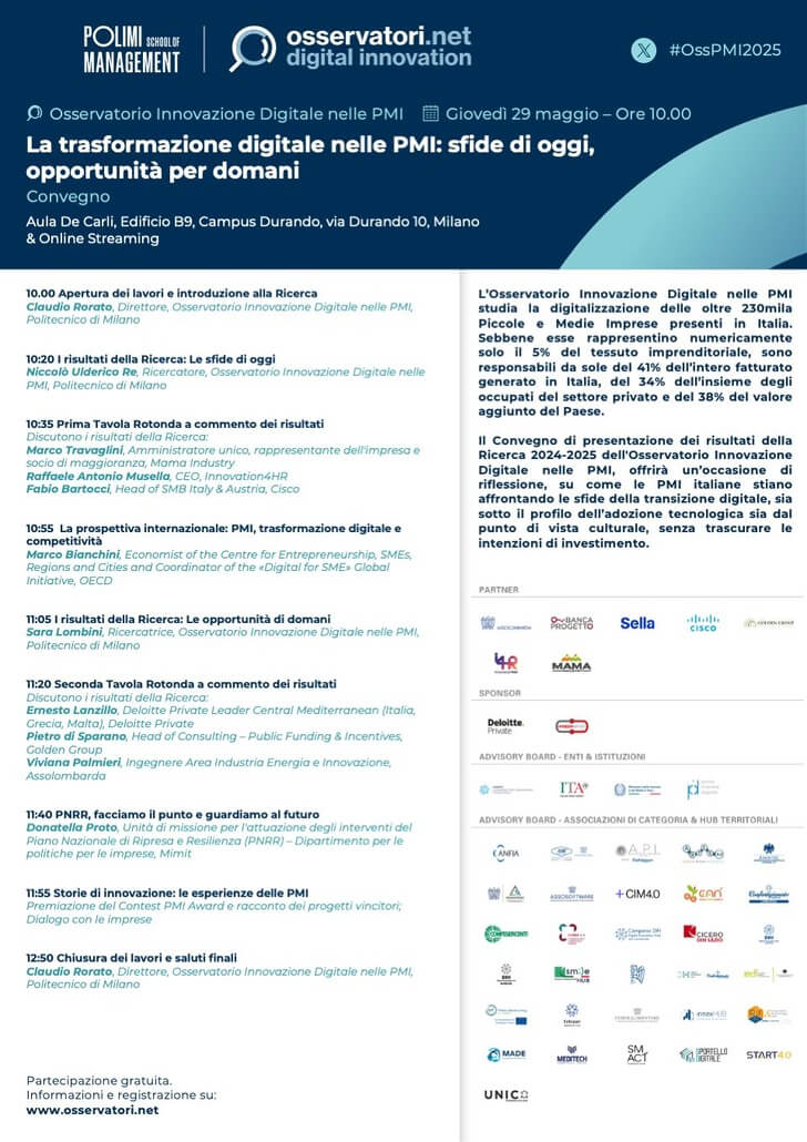 Durante il convegno di oggi saranno presentati i risultati dell’Osservatorio Innovazione delle PMI del Politecnico relativi al biennio 2024-2025.